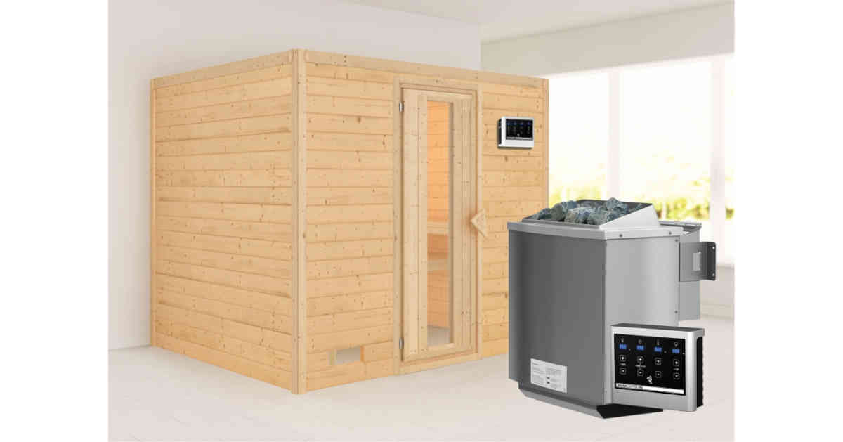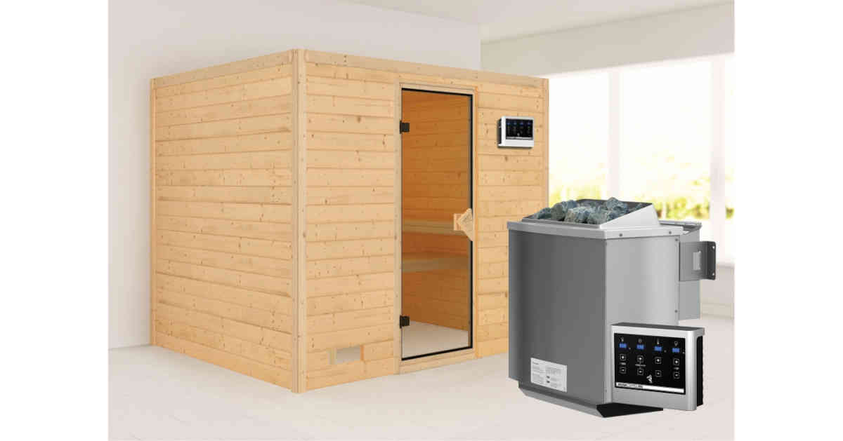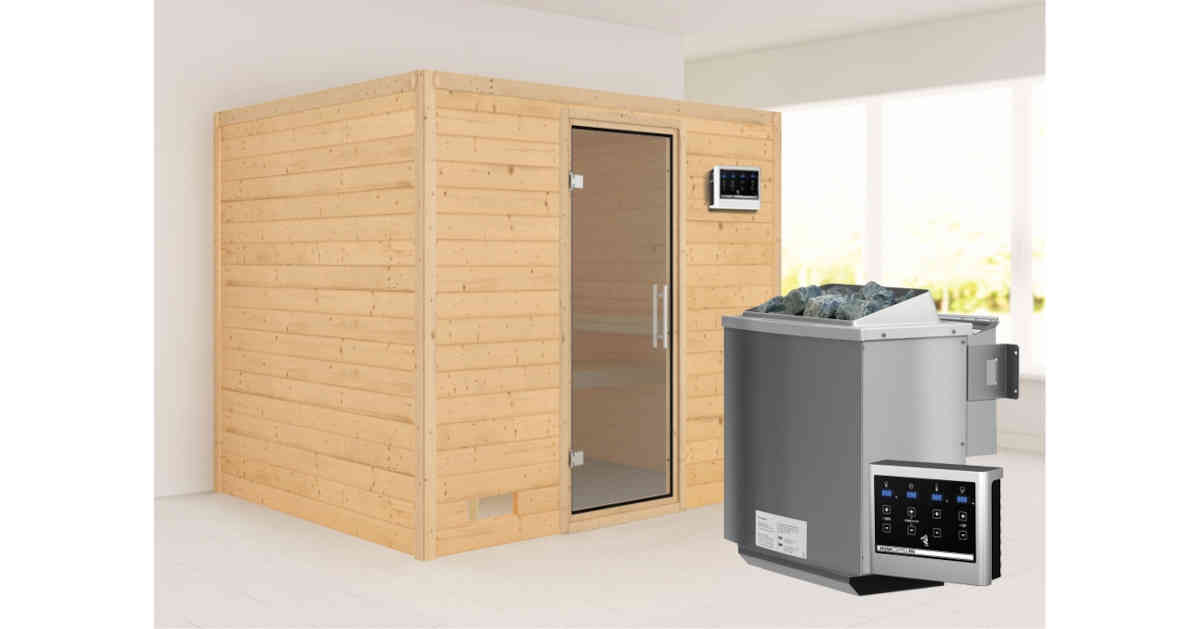 Karibu 38mm Systemsauna Sonara mit 9kW BIO-Kombiofen mit ext. Steuerung Easy