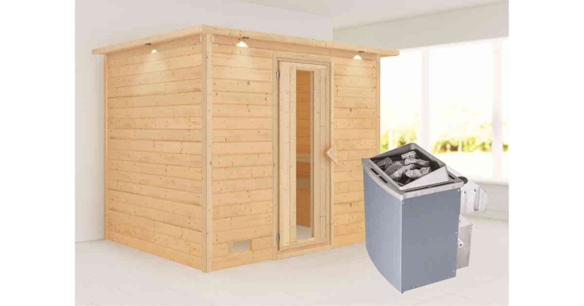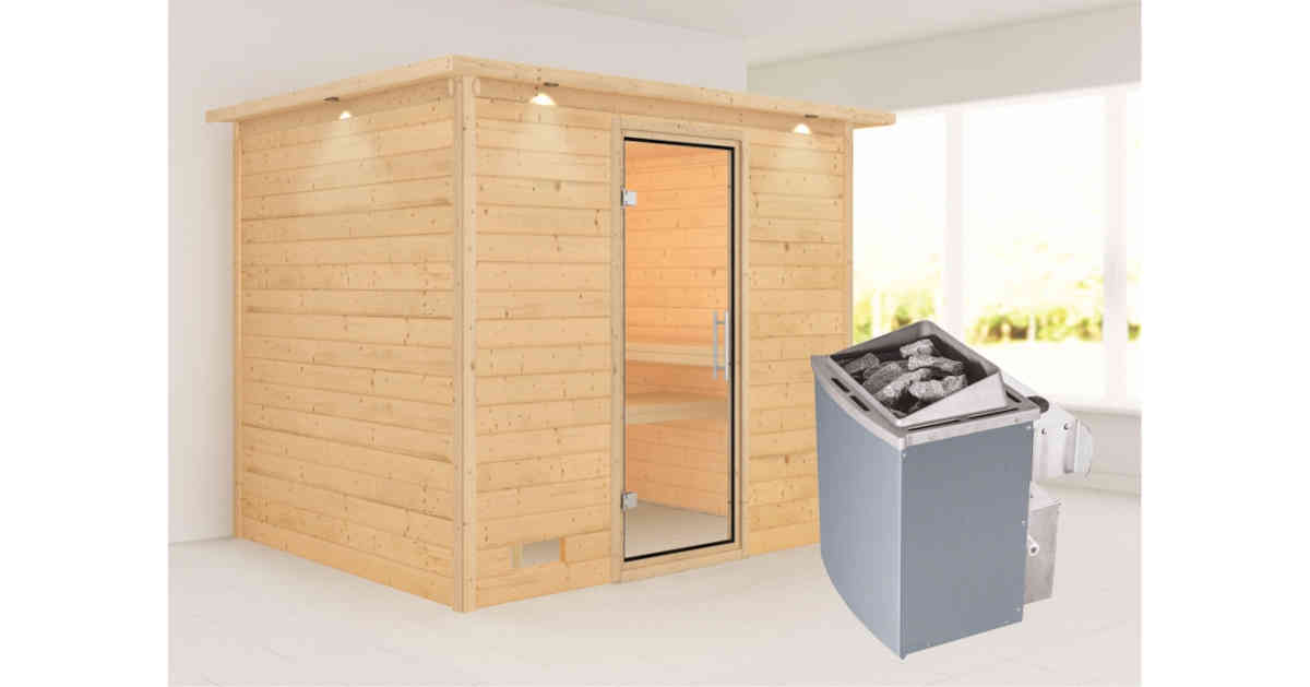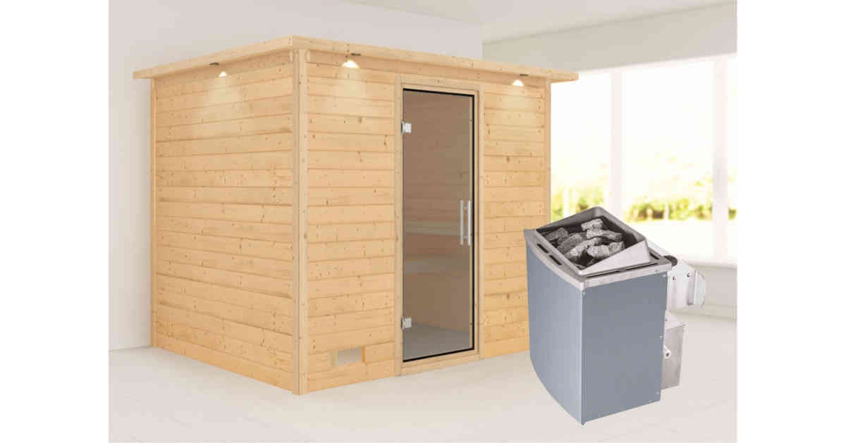 Karibu 38mm Systemsauna Sonara mit 9kW Saunaofen mit integrierter Steuerung