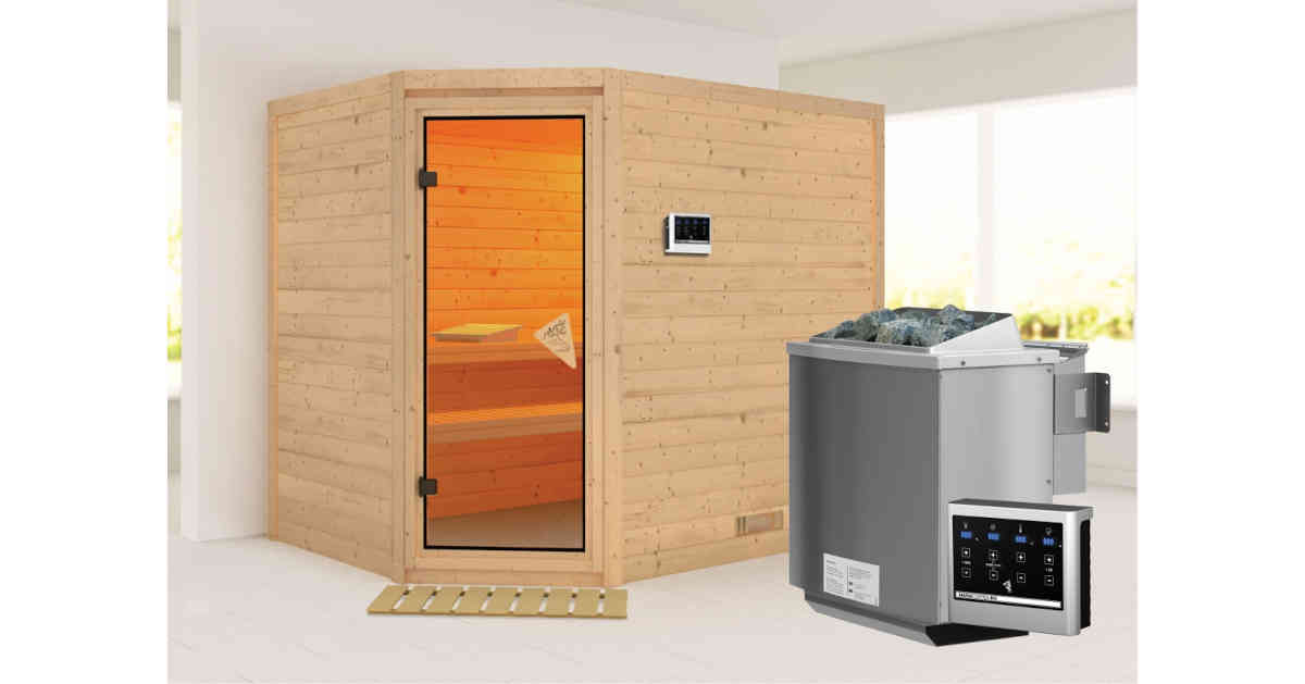 Karibu 38mm Systemsauna Tanami mit 9kW BIO-Kombiofen mit ext. Steuerung Easy