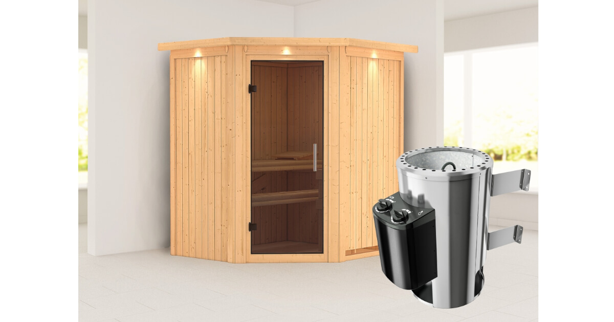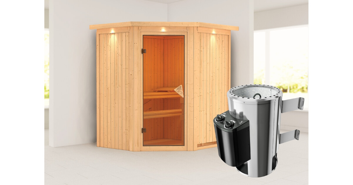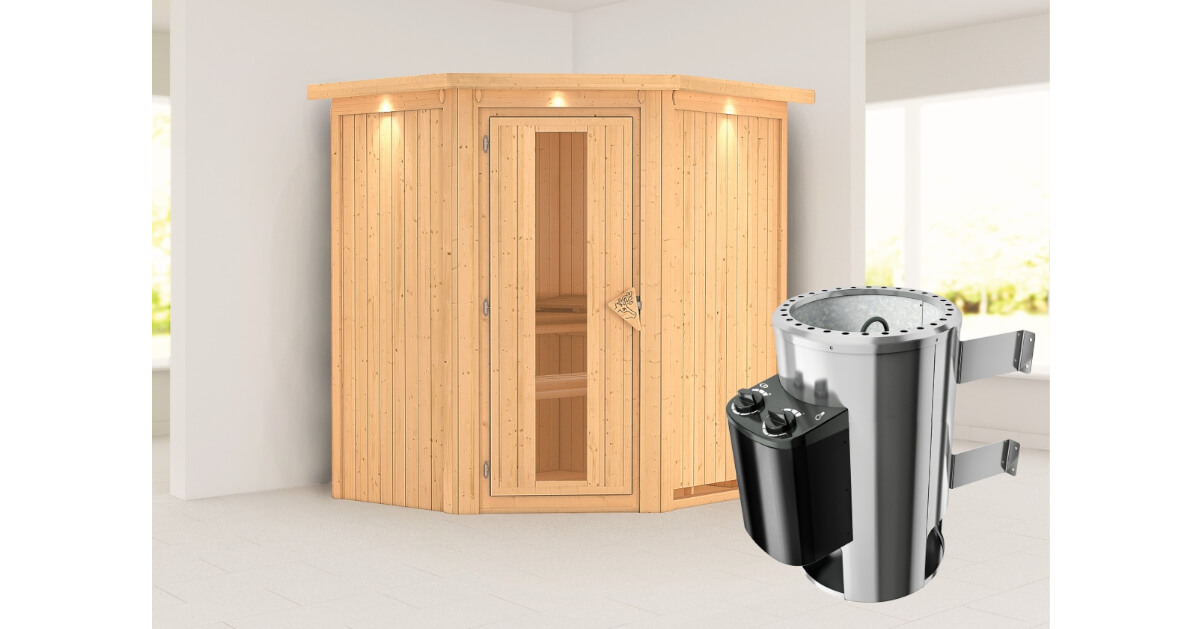 Karibu 68mm Systemsauna Tonja mit 3,6kW Saunaofen mit integrierter Steuerung