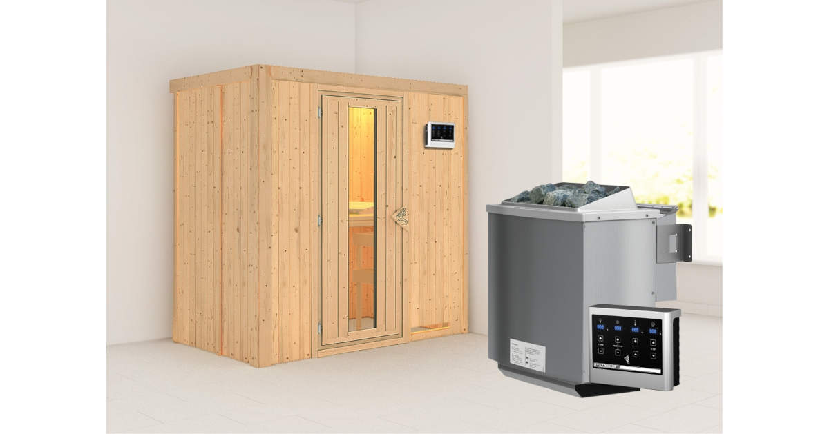 Karibu 68mm Systemsauna Variado + 9kW BIO-Kombiofen mit ext. Steuerung Easy