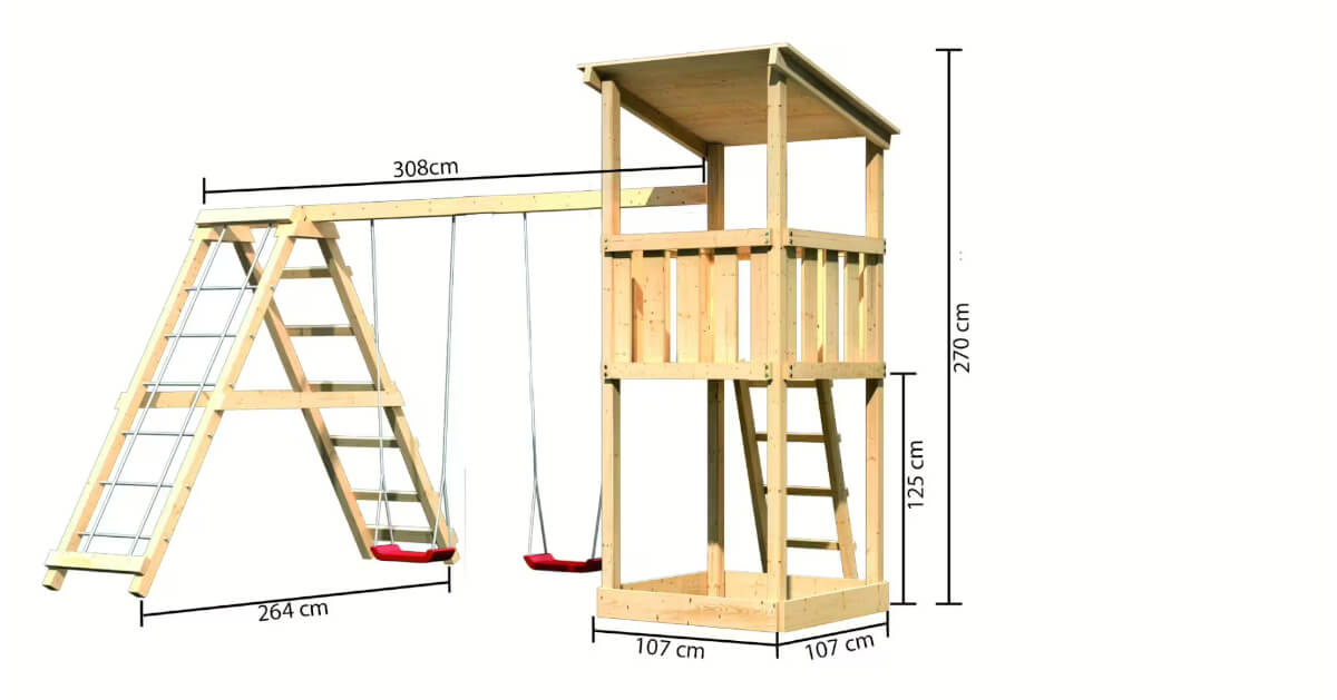 Achtung: Mit Schaukelanbau oder Kletterwand nicht für Kinder unter drei Jahren geeignet.