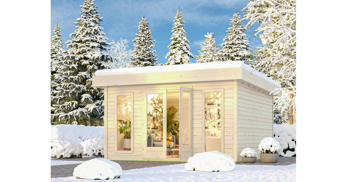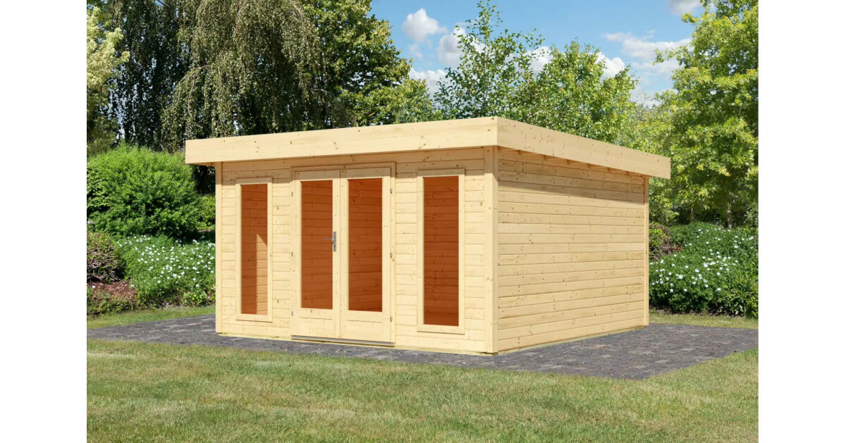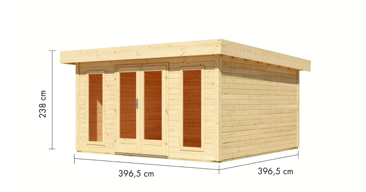 Unser Blockbohlenhaus North verfügt über eine besonders hohe Schneelast von 185 kg/m². Das Gartenhaus wird aus 38 mm starken Wandbrettern aus nordischer Fichte im Steck-/Schraubsystem gefertigt und gewährleistet somit einen einfachen Aufbau und eine extrem stabile Konstruktion mit doppeltem Nut- und Federbereich der Wandbretter. Das Pultdach besteht aus Massivholz. Der vordere Dachüberstand von 300 mm schützt den Eingangsbereich darüber hinaus wirkungsvoll. Die Grundfläche beträgt 15,72 qm bei einem umbauten Raum von 33,0 cbm. Mit einer Seitenhöhe von 212 cm und einer Firsthöhe von 238 cm bietet das Gartenhaus optimale Raumnutzung. Das Gartenhaus hat ein Sockelmaß von 393 cm x 393 cm. Bodenbalken sorgen für den Schutz von unten und werden unter das Gartenhaus gelegt. Durch die Kesseldruckimprägnierung der Bodenbalken sind diese vor Witterungseinflüssen und holzzersetzenden Pilzen bereits geschützt. Die praktische und vormontierte Tür sorgt mit Ihren großzügigen Abmessungen und dem Massivholzrahmen für einen einfachen Zutritt in das Gartenhaus und sichert den Inhalt nebenbei effektiv vor unbefugtem Zugriff. Die Verglasung der Lichtausschnitte sorgt für großzügigen Tageslichteinfall.