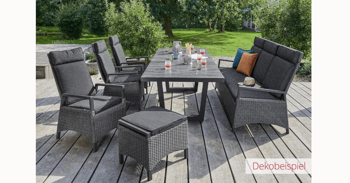 Kombinieren Sie diesen Artikel mit allen weiteren Möbeln aus der Keramo und Barcelona Serie von LC Garden. Das Geflecht und die Polster sind farblich und optisch bei allen Keramo und Barcelona Möbeln identisch. Als Fachhändler beraten wir Sie gerne bei Fragen zur Zusammenstellung und erstellen Ihnen ein kosten- und bedarfsorientiertes Angebot. Beachten Sie bitte auch unsere attraktiven Setangebote.