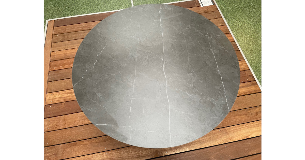 Die Tischplatte des Rundtischs Daxx ist aus Sintered Stone gefertigt, einem innovativen Material, das außergewöhnliche Vorteile bietet: