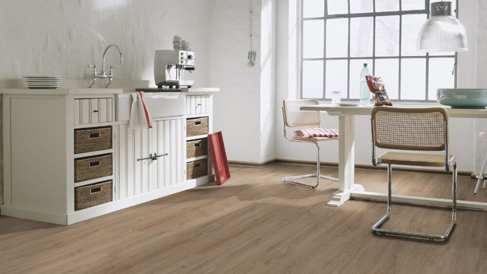 - Einfache und schnelle, leimlose Verlegung, auch auf Warmwasser-Fußbodenheizung