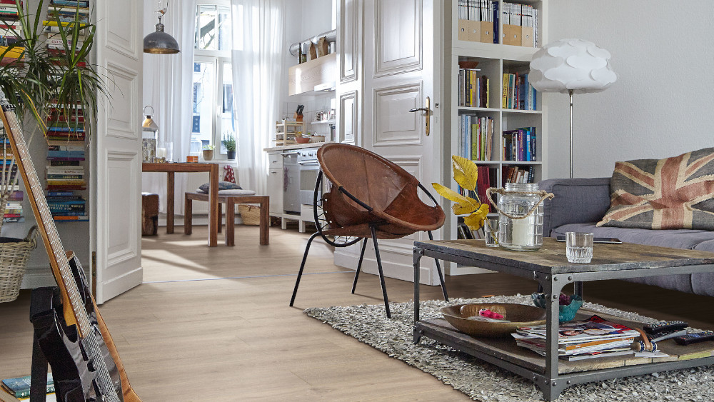 - Einfache und schnelle, leimlose Verlegung, auch auf Warmwasser-Fußbodenheizung