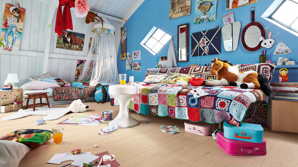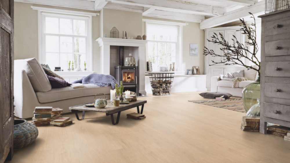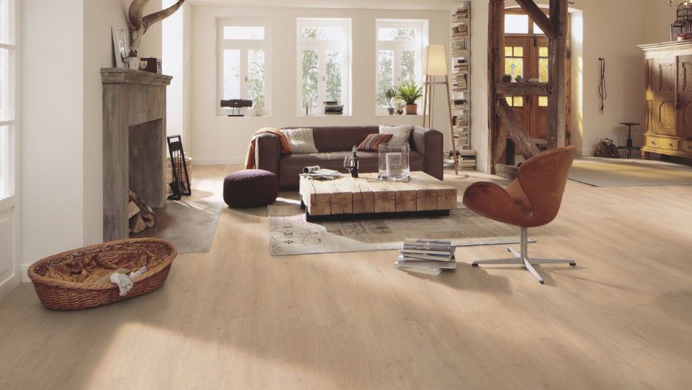 - Einfache und schnelle, leimlose Verlegung, auch auf Warmwasser-Fußbodenheizung