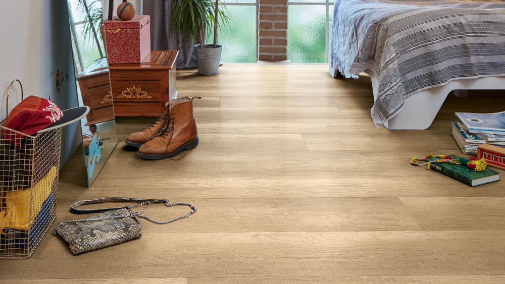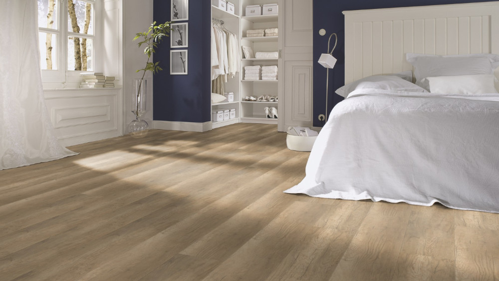 - Einfache und schnelle, leimlose Verlegung, auch auf Warmwasser-Fußbodenheizung