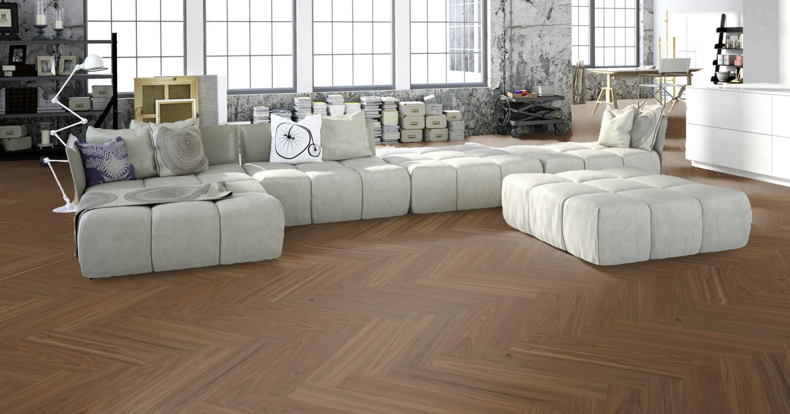 Lindura im Fischgrätformat - ein klassisches Verlegemuster ganz modern interpretiert! Durch das ultramattlackierte Finish, das jede einzelne Pore benetzt, wirkt der Boden nicht nur extra edel und natürlich, sondern ist auch besonders pflegeleicht, fleckenunempfindlich und resistent gegen Mikrokratzer (kleine Kratzer in der Lackoberfläche, die nicht bis zur Echtholzdeckschicht durchdringen). Auch die Verlegung ist dank des patentierten Klicksystem UniZip ganz unkompliziert, denn hier kommt statt A- und B-Dielen nur ein Dielentyp zum Einsatz.