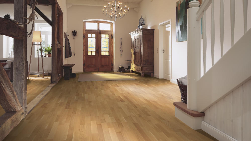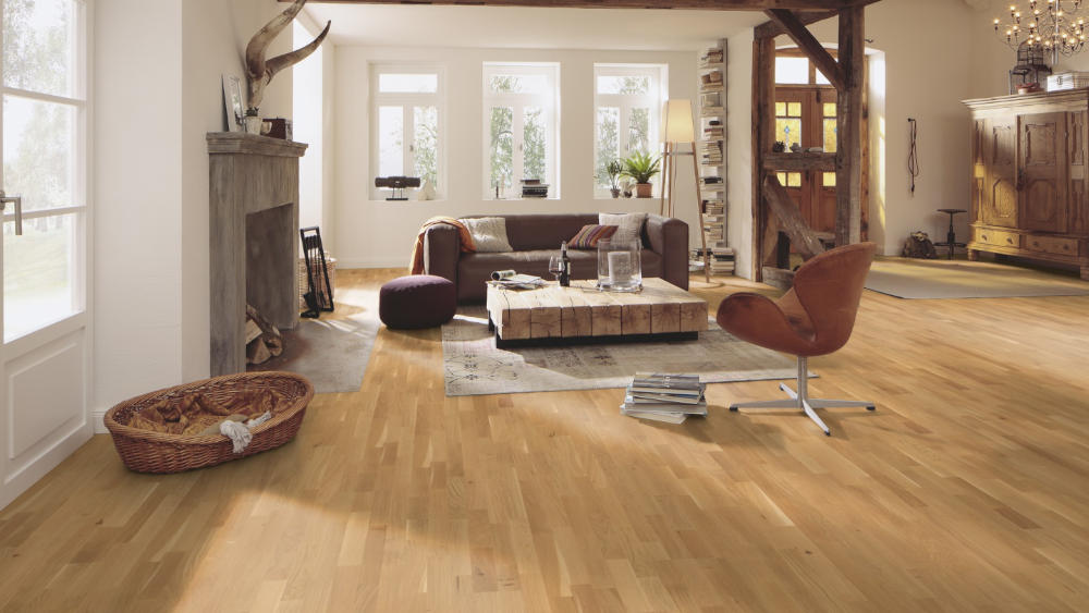 Schiffsboden ist ein ganz klassisches Erscheinungsbild eines Parketts. Dafür werden kleinere Holzabschnitte zusammengefügt, die in ihrer Gesamtheit eine abwechslungsreiche und gleichzeitig harmonisch wirkende Einheit bilden. Schiffsboden wie MeisterParkett. longlife eignet sich für alle Raumgrößen. Die Dielen gehen fugenlos ineinander über und lassen die verlegte Fläche somit besonders homogen wirken. Das Naturöl-Finish ist werkseitig aufgetragen und verleiht dem Schiffsboden die Extra-Portion Natürlichkeit. Zusätzlich wirkt es feuchtigkeitsregulierend und sorgt für ein gesundes Raumklima.