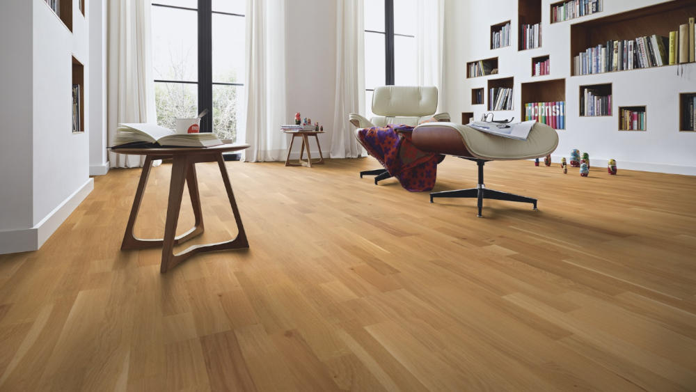 Schiffsboden ist ein ganz klassisches Erscheinungsbild eines Parketts. Dafür werden kleinere Holzabschnitte zusammengefügt, die in ihrer Gesamtheit eine abwechslungsreiche und gleichzeitig harmonisch wirkende Einheit bilden. Schiffsboden wie MeisterParkett. longlife PC 200 eignet sich für alle Raumgrößen. Die Dielen gehen fugenlos ineinander über und lassen die verlegte Fläche somit besonders homogen wirken. Durch das ultramattlackierte Finish, das jede einzelne Pore benetzt, wirkt der Boden nicht nur extra edel und natürlich, sondern ist auch besonders pflegeleicht, fleckenunempfindlich und resistent gegen Mikrokratzer (kleine Kratzer in der Lackoberfläche, die nicht bis zur Echtholzdeckschicht durchdringen).