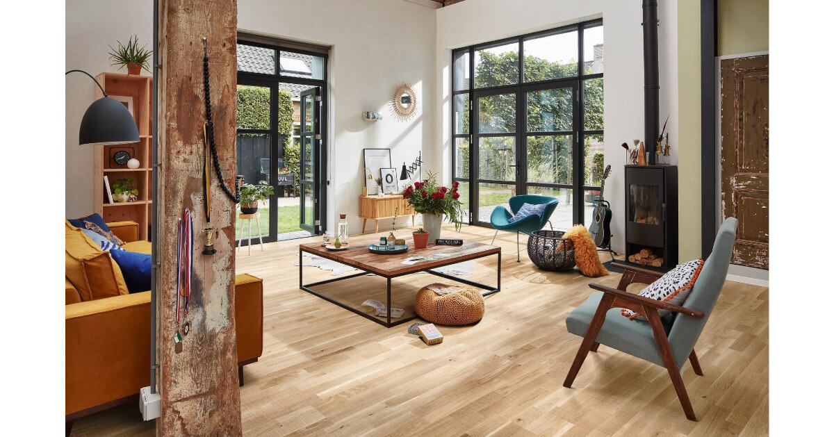 Schiffsboden ist ein ganz klassisches Erscheinungsbild eines Parketts. Dafür werden kleinere Holzabschnitte zusammengefügt, die in ihrer Gesamtheit eine abwechslungsreiche und gleichzeitig harmonisch wirkende Einheit bilden. Schiffsboden wie MeisterParkett. longlife eignet sich für alle Raumgrößen. Die Dielen gehen fugenlos ineinander über und lassen die verlegte Fläche somit besonders homogen wirken. Zusätzlich wirkt es feuchtigkeitsregulierend und sorgt für ein gesundes Raumklima.