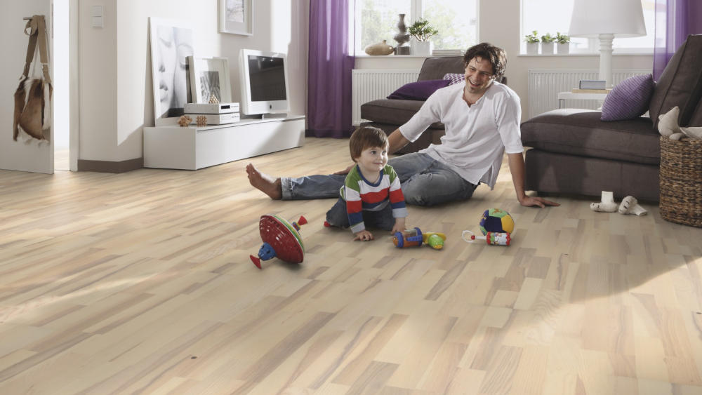 Schiffsboden ist ein ganz klassisches Erscheinungsbild eines Parketts. Dafür werden kleinere Holzabschnitte zusammengefügt, die in ihrer Gesamtheit eine abwechslungsreiche und gleichzeitig harmonisch wirkende Einheit bilden. Schiffsboden wie MeisterParkett. longlife PC 200 eignet sich für alle Raumgrößen. Die Dielen gehen fugenlos ineinander über und lassen die verlegte Fläche somit besonders homogen wirken. Durch das ultramattlackierte Finish, das jede einzelne Pore benetzt, wirkt der Boden nicht nur extra edel und natürlich, sondern ist auch besonders pflegeleicht, fleckenunempfindlich und resistent gegen Mikrokratzer (kleine Kratzer in der Lackoberfläche, die nicht bis zur Echtholzdeckschicht durchdringen).