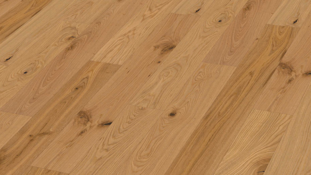 Parkettsortierung authentic: In dieser Sortierung bieten wir bewusst Oberflächen mit starkem Farb- und Strukturspiel, die den natürlichen Charakter des Holzes betonen. Größere Äste, vereinzelte Risse und Splintanteile gehören zum rustikalen Gesamtbild.