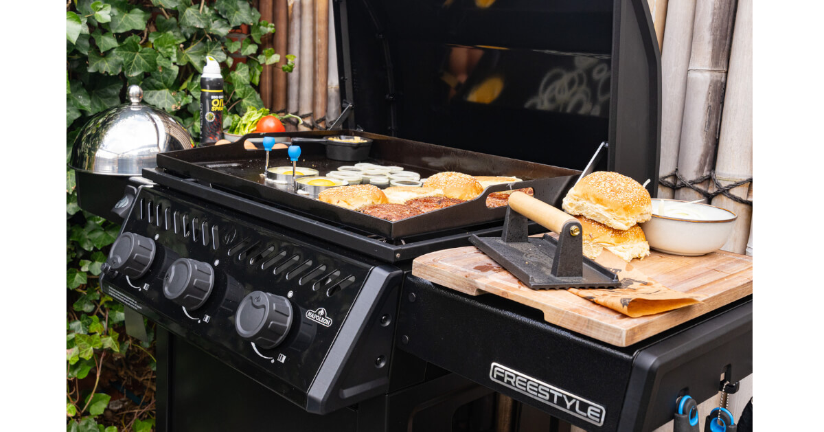 Der Napoleon Freestyle™ Plancha ist ein vollwertiger Grill für alle, die neue Wege beim Outdoor-Grillen gehen wollen. Fisch, Garnelen, Gemüse, Spiegeleier oder sogar Pancakes gelingen auf der glatten Edelstahlfläche (60 × 44 cm) besonders schnell, aromatisch und saftig. Drei Brenner mit insgesamt bis zu 7,65 kW sorgen für eine gleichmäßige Hitzeverteilung – perfekt für kreative Ideen unter der Woche oder entspannte Abende mit Gästen. Die Plancha ist pflegeleicht, komfortabel ausgestattet und kompakt im Design – ideal auch als stilvolle Ergänzung zum klassischen Gasgrill. Klappbare Seitenablagen mit integriertem Flaschenöffner, eine große, leicht zu reinigende Fettauffangwanne und eine langlebige Edelstahl-Grillplatte machen den Umgang besonders unkompliziert. Der Freestyle™ Plancha ist die ideale Wahl für alle, die Wert auf Vielseitigkeit, Qualität und unkomplizierten Grillgenuss legen – ob als Hauptakteur oder smarte Erweiterung im Garten.