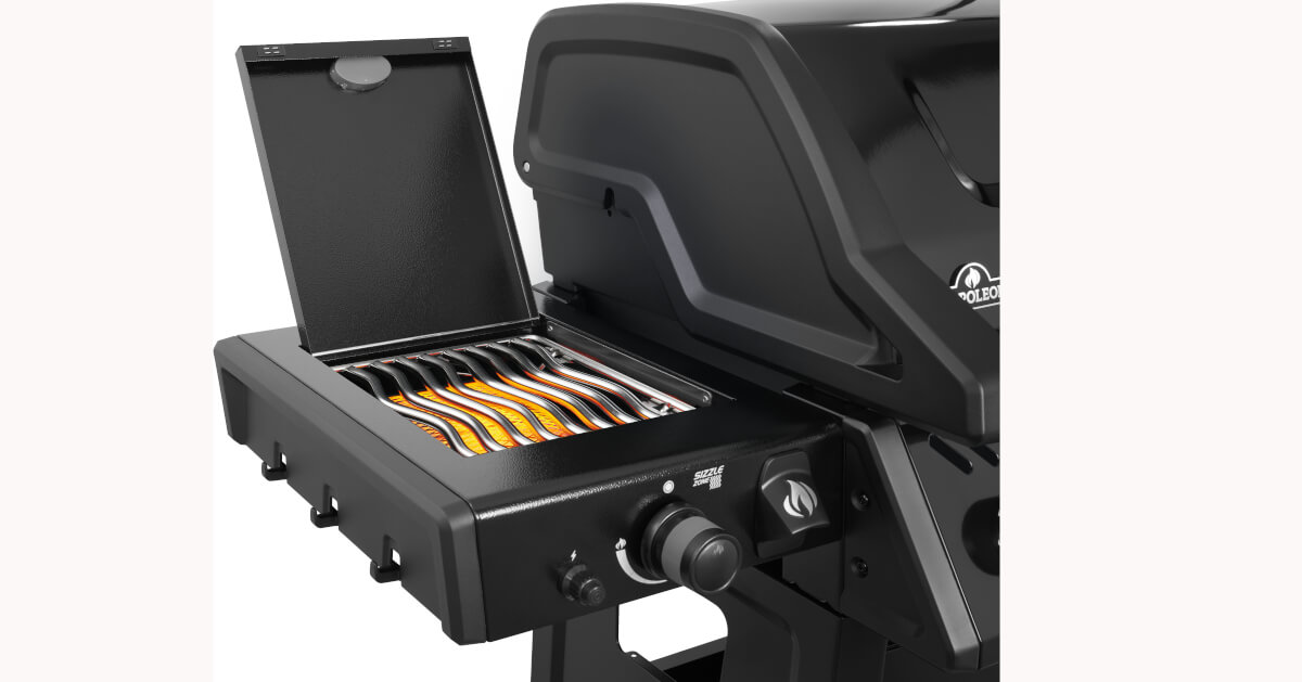 - SIZZLE ZONE® Infrarot-Seitenbrenner zum Anbraten, mit Edelstahl Grillroste