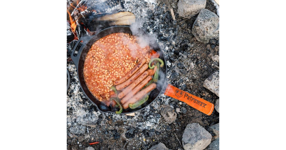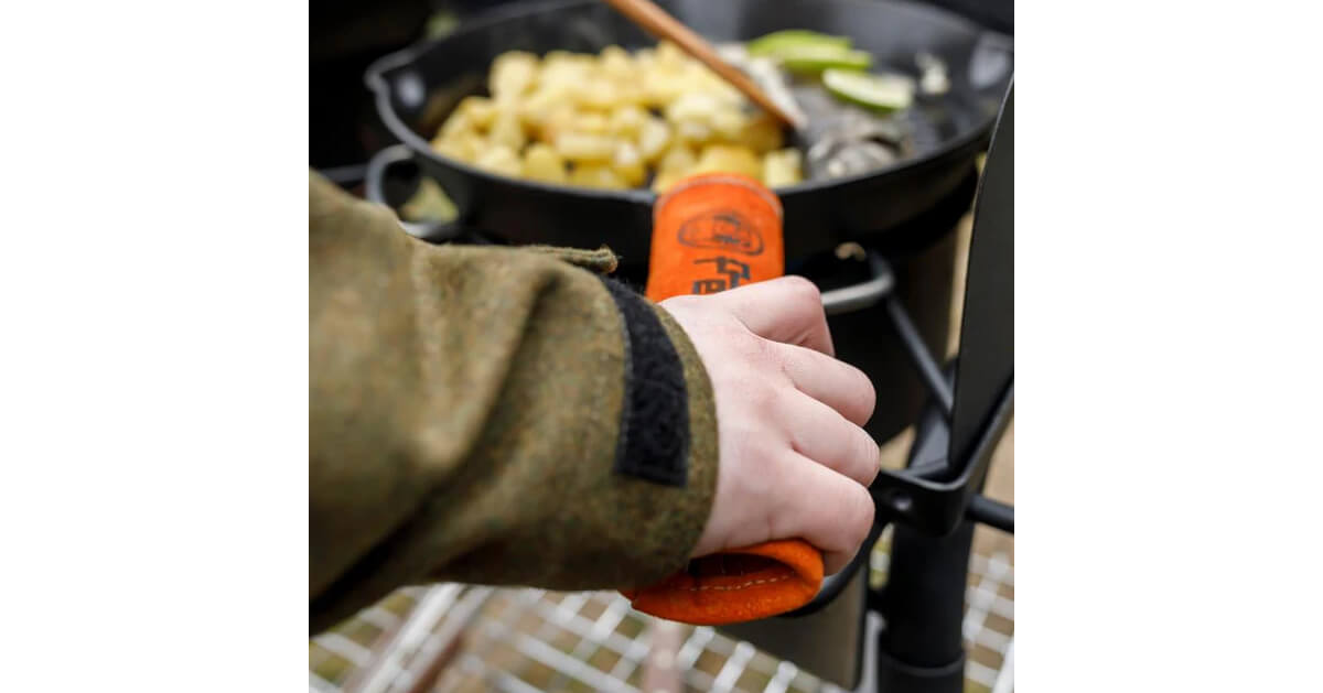 Heiße Optik: Die in Glutorange leuchtende Aramid Griffhülle verspricht dir Bratabenteuer in greifbarer Nähe. Denn als universellen Überzug kannst du sie für alle Stiele deiner gusseisernen Pfannen von Petromax verwenden – unabhängig von Modell und Größe. Die Griffhülle besteht aus Rauleder und ist dünn mit Aramidfasern gefüttert, was dir natürlichen Halt gibt und deinen festen Griff verstärkt. Schieb die Griffhülle einfach über den Pfannenstiel und versetze oder hebe deine gusseiserne Bratausrüstung zukünftig bequem beim Draußen-Kochen oder beim Braten auf der Herdfläche zu Hause. Geeignet für alle Größen von Feuerpfanne fp20 bis fp40.