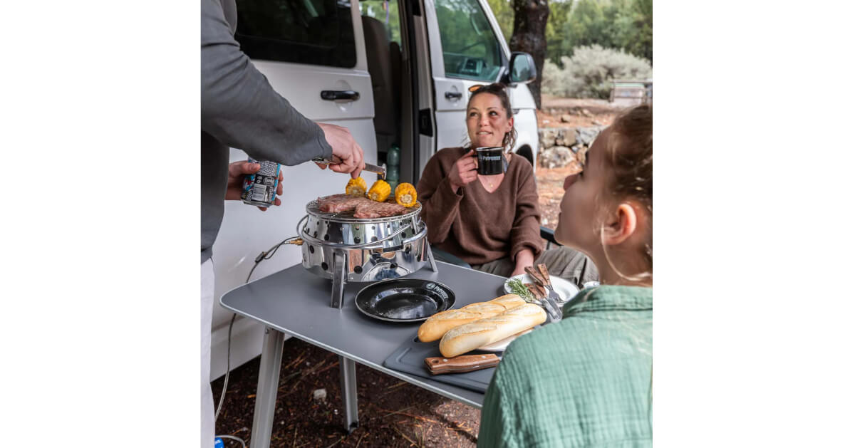 Das im Set enthaltene, hochwertige Edelstahl-Grillrost ist pflegeleicht und bietet mit seinem doppelten Rand sicheren Halt für dein Grillgut, auch auf unebenen Untergründen. Die großzügige Grillfläche ermöglicht es dabei mehreren Campern gleichzeitig zu grillen. Im Nachhinein ist der Atago Gasgrill im Handumdrehen wieder verstaut. Dank des cleveren Klappmechanismus faltet er sich in Sekundenschnelle wieder zusammen.