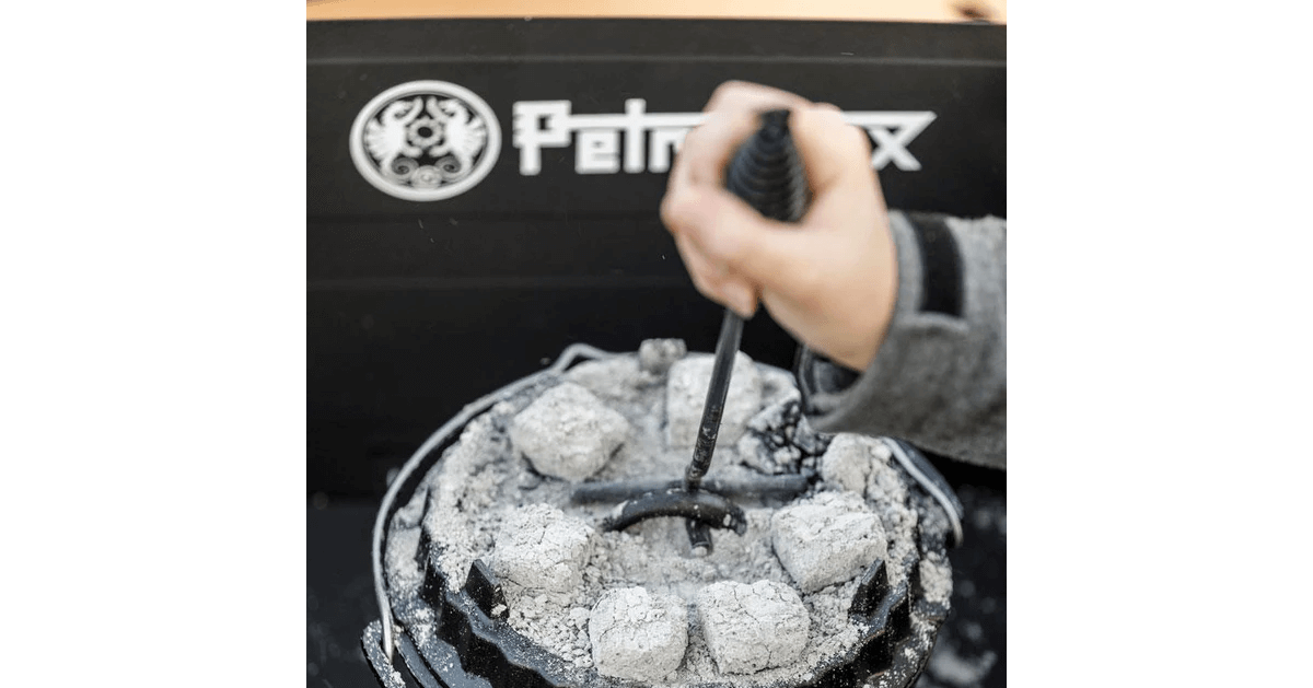 Der elegant geschwungene Griff liegt gut und sicher in der Hand des Benutzers, sodass das Anheben des Deckels problemlos gelingt. Mit einer Länge von 32 cm sorgt der Deckelheber für den richtigen Abstand zum heißen Deckel. So verbindet der Deckelheber nicht nur formschönes Petromax-Design mit robuster Verarbeitung, sondern gewährleistet auch eine sichere Handhabung des heißen Feuertopfdeckels.