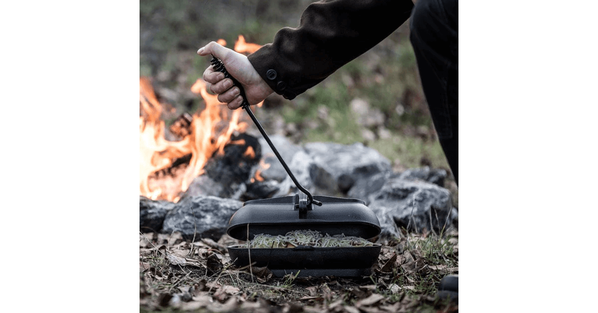 Mit dem Petromax Deckelheber gelingt es einfach und unkompliziert, den heißen Deckel vom Feuertopf anzuheben und wieder aufzusetzen.