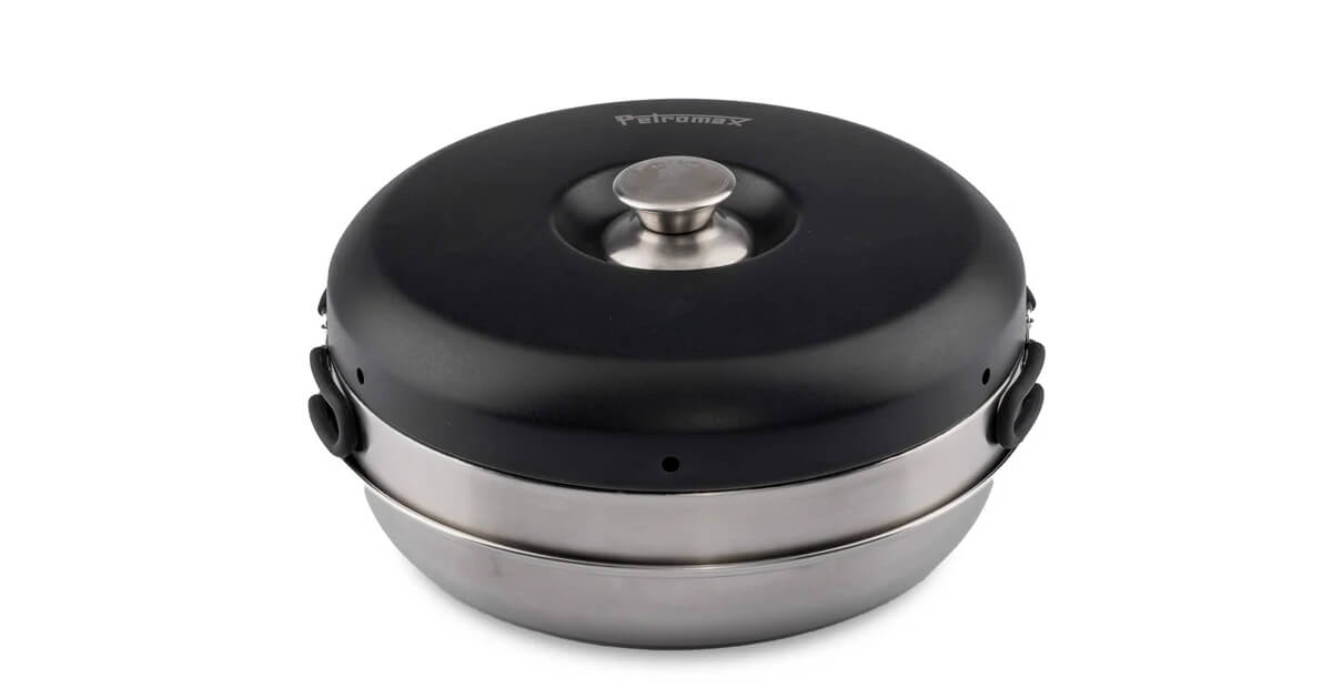 Mit dem kompakten Petromax Dimego Camp Oven erlebst du eine neue Ära des Outdoor-Kochens. Als ideale Ergänzung für unvergessliche Campingmomente ist der Camping Backofen perfekt für deine Outdoor-Reiseziele. Mit seiner Innenbeschichtung ist er ideal für frische Ofen-Gerichte wie überbackene Aufläufe, knusprige Brötchen oder saftige Kuchen. Der Camping Backofen besteht aus drei Teilen: dem Basiselement, das direkt auf dem Kochkreuz des Gaskochers platziert wird, einer beschichteten Ringform mit Griffen und einem Deckel.