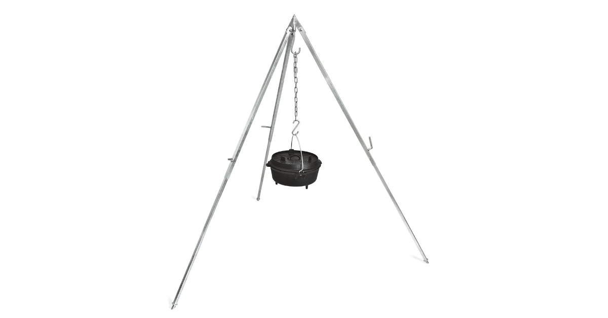 Mit dem Petromax Dreibein kann einfach und effizient die Outdoor-Küche perfektioniert werden. An dem Haken des robusten Dreibeins lässt sich ein Grillrost oder der Petromax Feuertopf einfach aufhängen. Durch die variable Kette kann der Abstand zwischen Topf oder Kessel und dem Feuer jederzeit verändert werden. Die abgeschrägten Füße sorgen auf den verschiedensten Böden für einen sicheren Stand des Dreibeins. Zudem ist jedes Bein einzeln und stufenlos höhenverstellbar, sodass sich Unebenheiten des Untergrunds mühelos ausgleichen lassen.