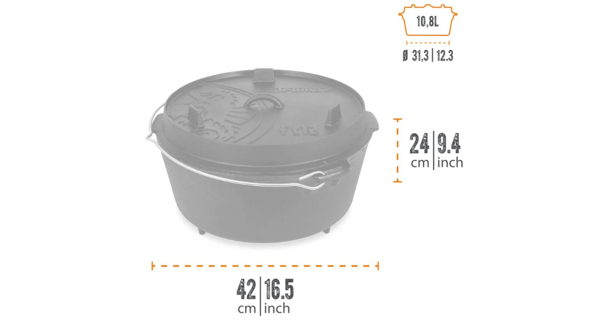 Die besondere Qualität der Feuertöpfe zeigt sich in den gleichmäßigen Wandstärken und den behandelten Kanten, die für eine hervorragende Hitzeverteilung und -speicherung sorgen. So garen deine Speisen gleichmäßig. Der Deckel kann zudem als Pfanne genutzt werden und verfügt über einen hohen Rand, damit Kohle oder Briketts nicht herunterfallen.