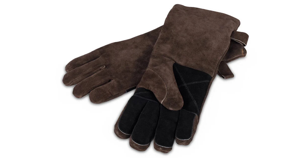 Grillhandschuhe aus dunkelbraunem Rauleder und komfortablem Vlies, die bis zu 250°C standhalten. Mit Kevlar®-Hitzeschutz bieten sie dir Schutz rund um Grill - und Feuerstelle.