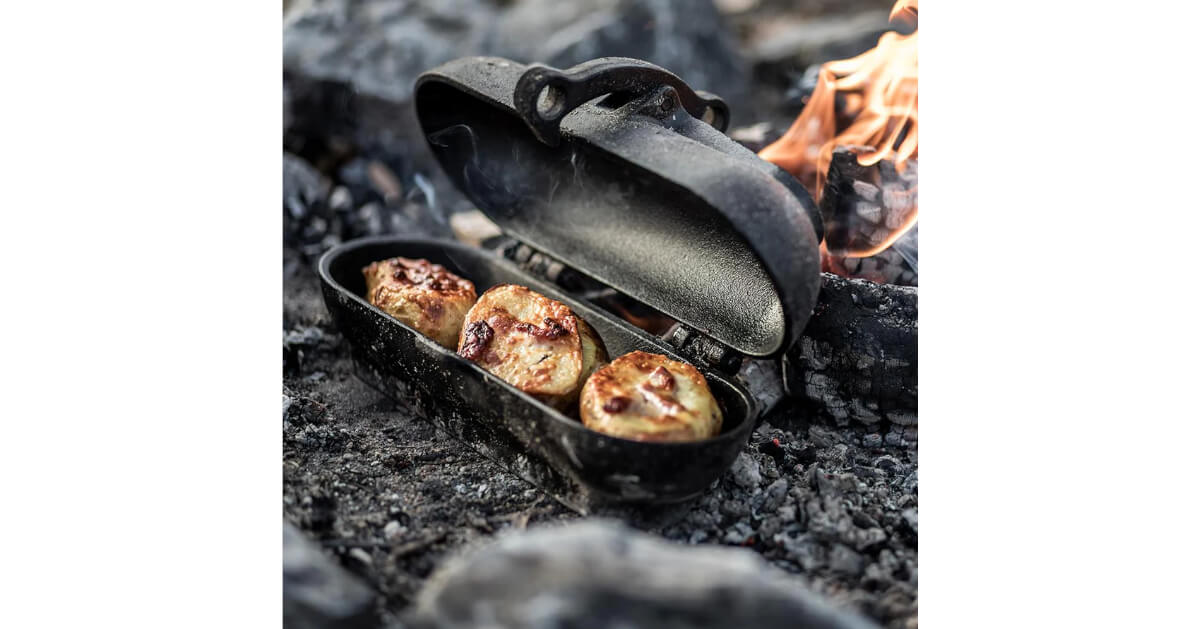 In der Glut gebackene Kartoffeln, ob als Hauptspeise oder als Beilage zu saftigen Steaks, passen zu einem Abenteuermenü. Mit dem gusseisernen Kartoffelbräter bereitest du Kartoffeln und Gemüse mit dem charakteristischen Röstgeschmack zu.
