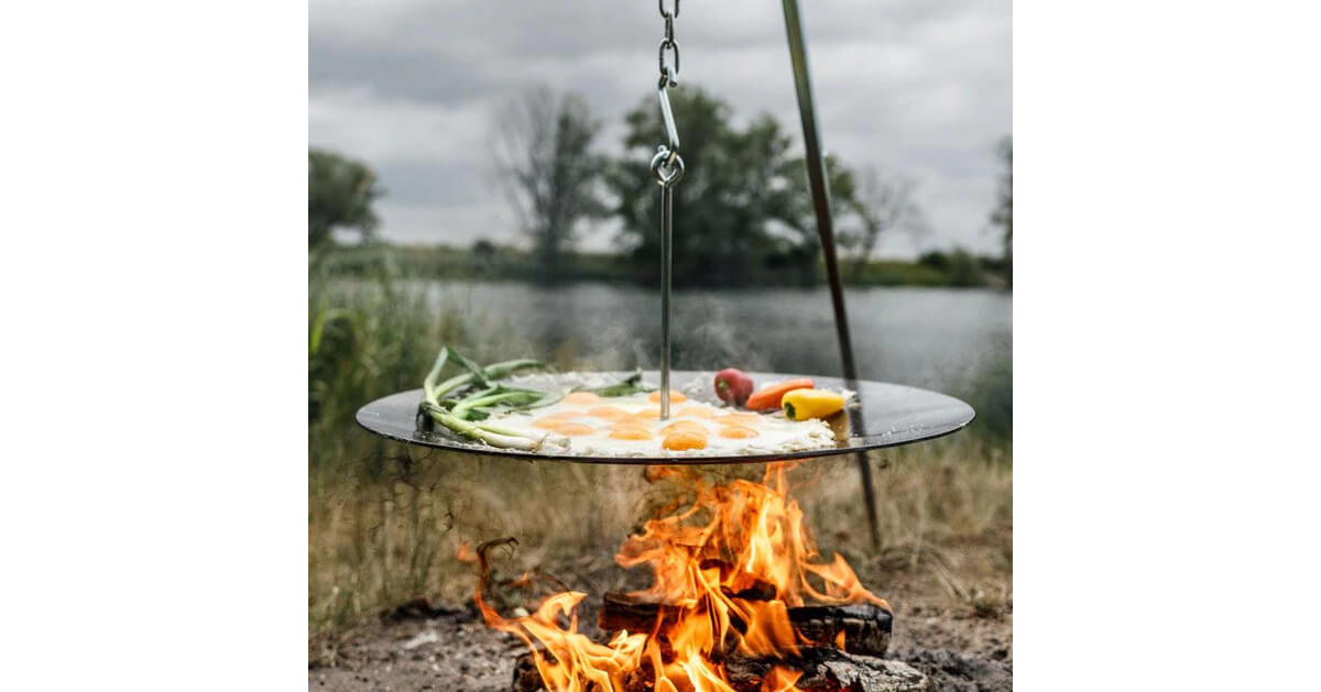 Die Hänge-Grillschale verbindet traditionelles Kochen über offenem Feuer mit moderner Funktionalität: Dank der praktischen Stab-Öse befestigst du die Schale schnell und einfach am Haken deines Dreibeins. Direkt über deiner Feuerstelle positioniert, erreicht der hochwertige Stahl schnell die richtige Temperatur und ermöglicht ein besonders schonendes Braten, bei dem alle Aromen und Säfte erhalten bleiben.
