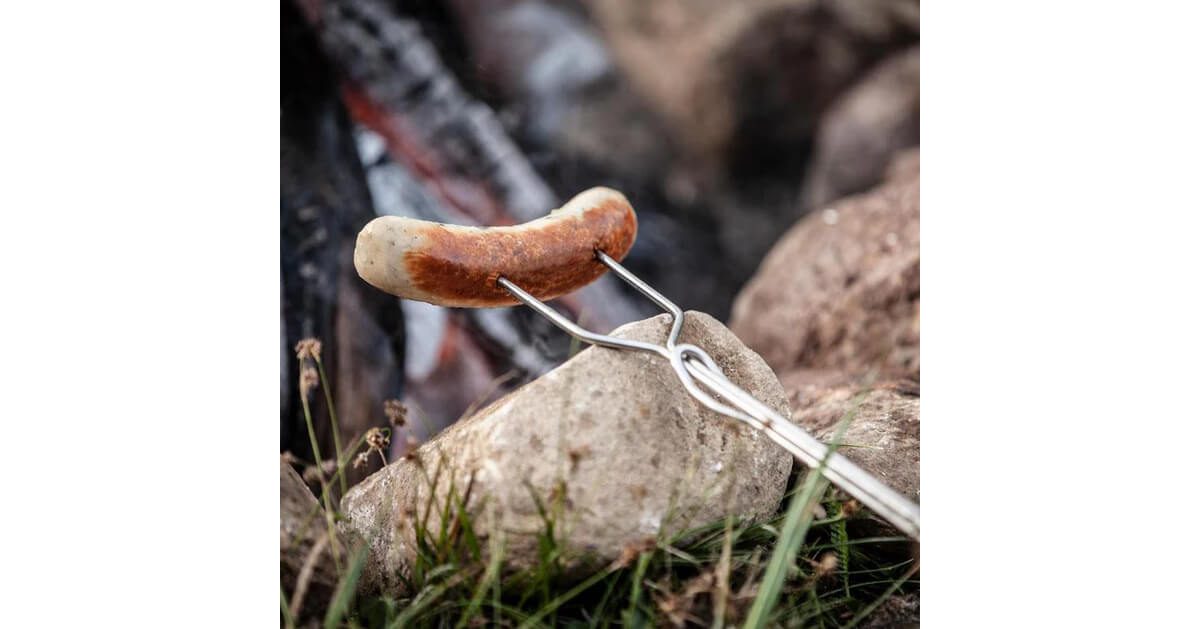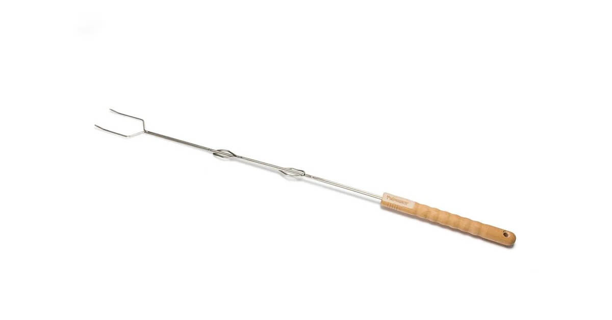 - Spieß aus Edelstahl mit zwei leicht nach oben gebogenen Zinken: Rösten von Würstchen, Gemüse oder Marshmallows über dem Feuer oder den Kohlen