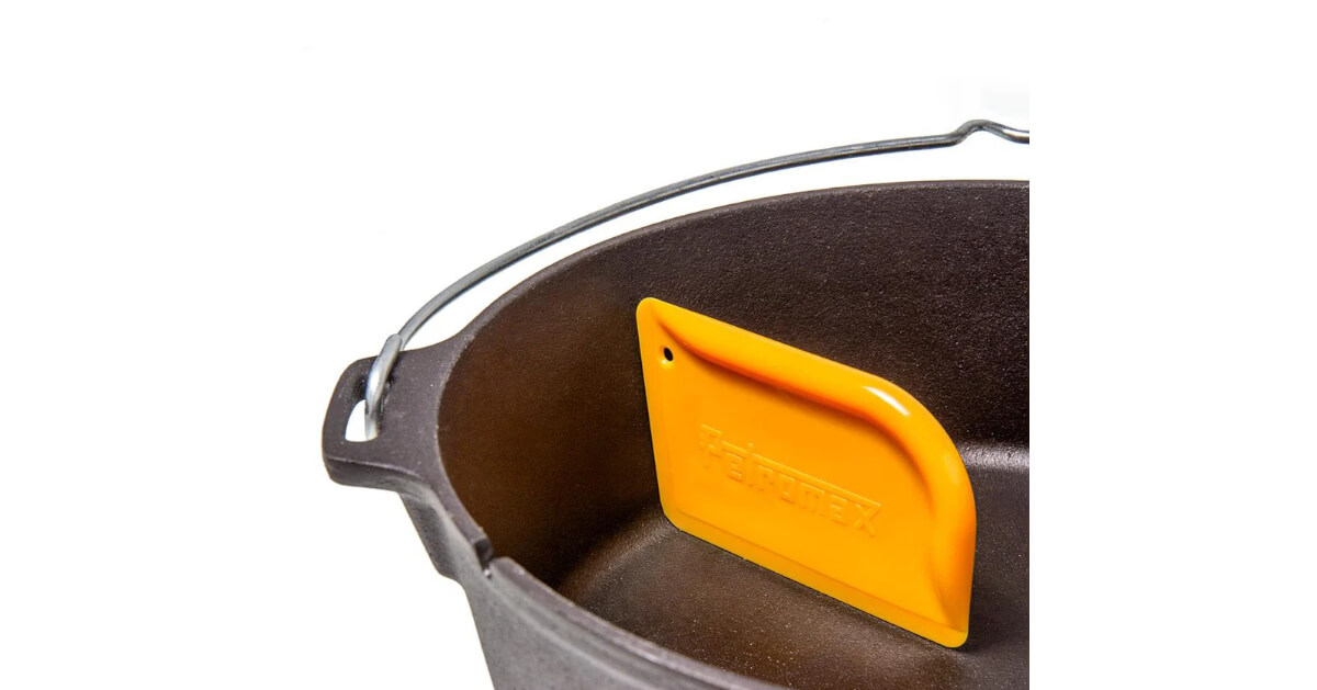 Nicht nur die Form passt ideal zu deinem Petromax Kochgeschirr, auch seine Materialeigenschaften machen den Schaber besonders vielseitig: Das Küchenutensil ist aus bis zu 120 °C hitzebeständigen Kunststoff hergestellt.