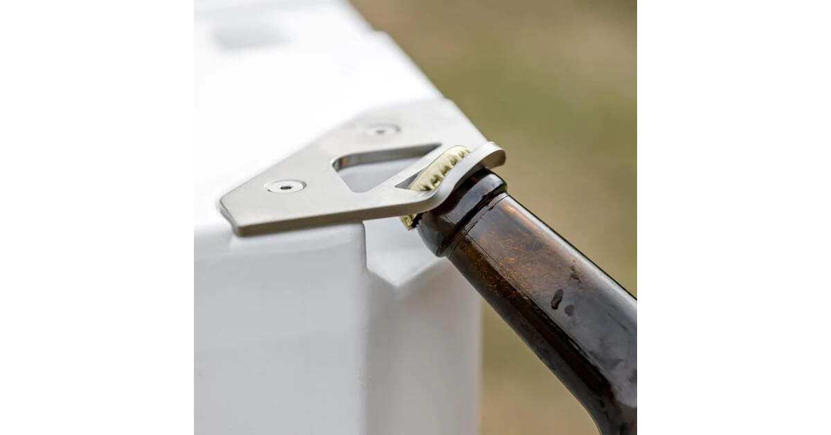 Die Petromax Kühlbox sicher verschließen und Getränkeflaschen bequem öffnen: Die Schlossplatte mit integriertem Flaschenöffner bietet dir bei deinen Draußen-Abenteuern eine praktische Doppelfunktion. Das Zubehörteil aus Edelstahl passt genau an die Position der unteren Verschlussplatte deiner Petromax Kühlbox und wird einfach gegen diese ausgetauscht. So verschließt du weiterhin deinen Proviant sicher vor fremdem Zugriff und kannst gleichzeitig Getränkeflaschen mit handelsüblichem Kronkorkenverschluss öffnen. Die Schlossplatte mit Flaschenöffner ist universell und daher für alle Petromax Kühlboxen geeignet.