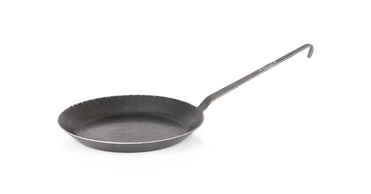 Die schmiedeeiserne Pfanne ist für alle Herdarten und das offene Feuer geeignet.
