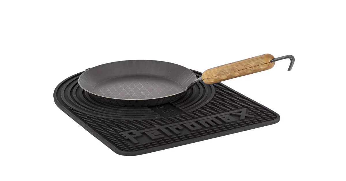 Die Petromax Silikonmatte ist temperaturbeständig von -40°C bis +230°C und eignet sich für den Einsatz in der Küche drinnen und draußen. Sie bietet eine ideale Oberfläche für Kochvorbereitungen, ist robust und passt für Feuertöpfe bis Größe FT9.