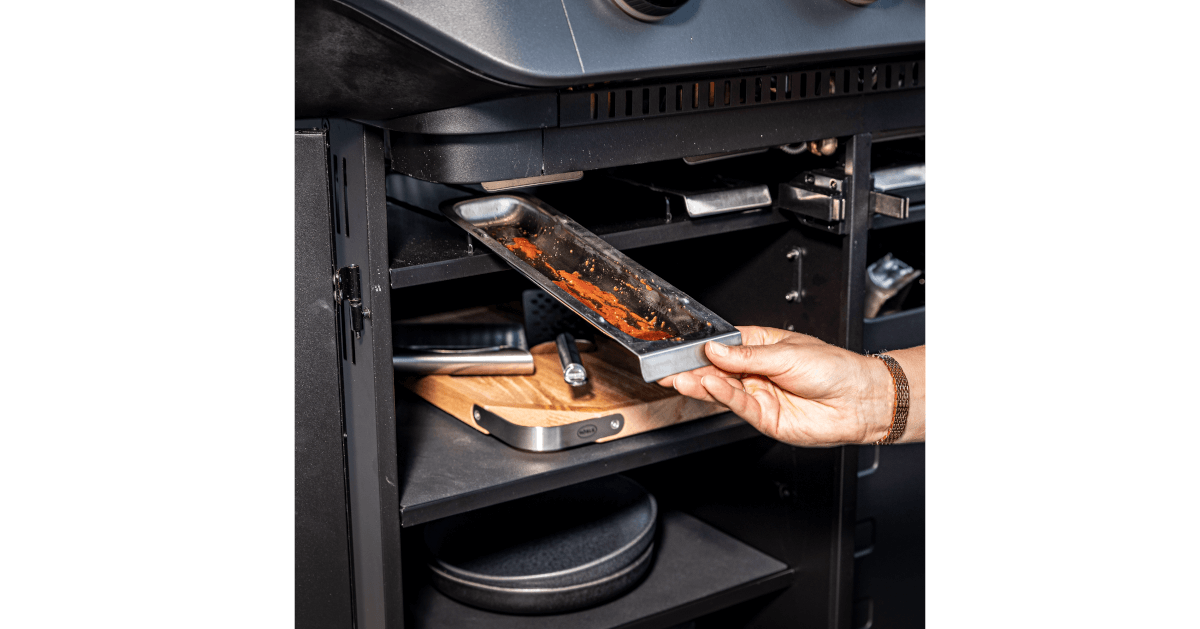 Die massive Brennkammer aus Aluminium-Druckguss sorgt für optimale Hitzeverteilung, hohe Haltbarkeit und einfache Reinigung (ein einziges glattes Teil, abwischbar) – mit 10 Jahren Garantie. Das durchdachte Fettauffang- und -ableitsystem mit entnehmbaren Schalen schützt vor Fettbränden und lässt sich bequem in der Spülmaschine reinigen.
