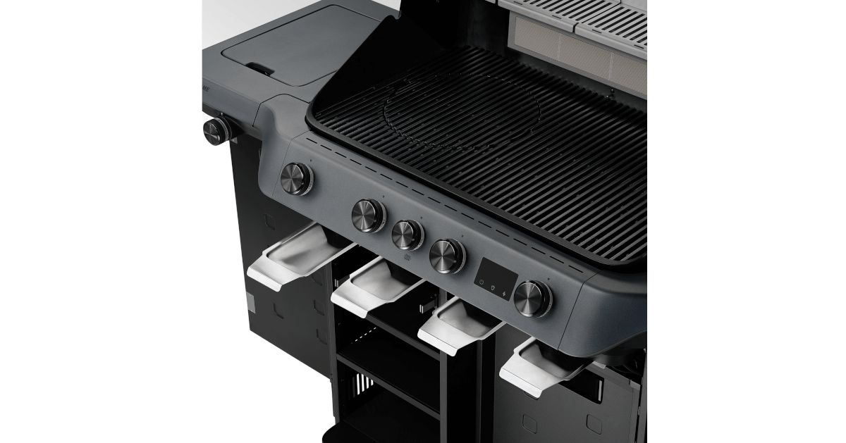 - Temperaturkontrolle, Seitentische, Warmhalterost und Beleuchtung