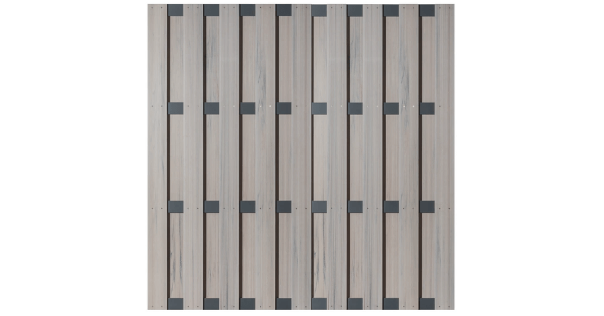 Sichtschutzzäune WPC (Holz-Kunststoff-Gemisch), Maß ca. B 180 x H 180 cm, Bohlen ca. 9 x 115 mm, mit 4 Riegeln aus Aluminium anthrazit, edelstahlverschraubt, ohne Pfosten (gegen Aufpreis erhältlich).