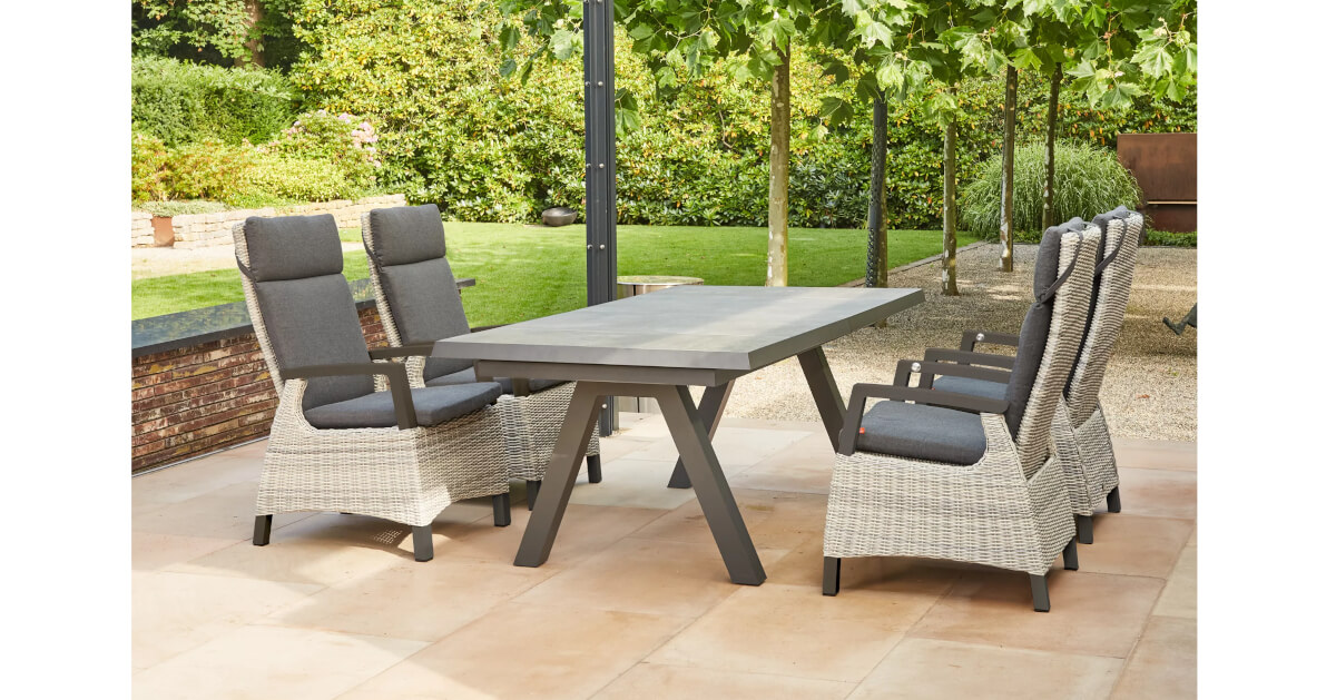Komfort und Flexibilität werden bei diesem Dining-Set von SIENA GARDEN großgeschrieben - verbringen Sie einzigartige Momente zusammen mit Freunden und Familie. Die moderne Tischgruppe besticht durch höchsten Sitzgenuss. Hier trifft Qualität auf schlichte Eleganz und viel Funktionalität: Die Rückenlehne der bequemen Dining Sessel lässt sich stufenlos verstellen und der Ausziehtisch ist nicht nur optisch ein Highlight, sondern lässt sich ganz nach Bedarf vergrößern. Holen Sie sich mit diesem Dining-Set eine Extraportion Komfort in Ihren Garten.