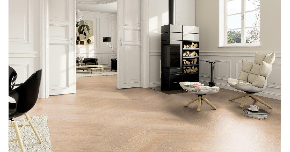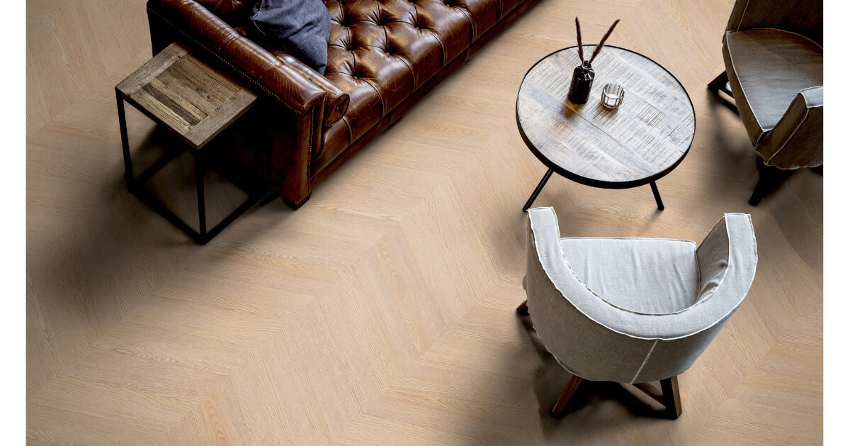 Neu bei Sōya-Vinyl: Chevron Das Chevron-Verlegemuster, auch als Französisches Fischgrät bekannt, zeichnet sich durch präzise geschnittene Dielen aus, deren Enden im Winkel von 60° abgeschrägt sind und an der Schnittkante aufeinandertreffen. Dadurch entstehen perfekt abgestimmte Spitzen, die eine klare, gleichmäßige V-Form bilden. Im Vergleich zum klassischen Fischgrät-Muster, bei dem die Kopfkante der einen Diele auf das Ende der Längskante der anderen Diele im 45° Winkel trifft, wirkt Chevron ruhiger und strukturierter. Diese unkonventionelle Offenheit kommt besonders in modernen oder repräsentativen Einrichtungen zur Geltung.