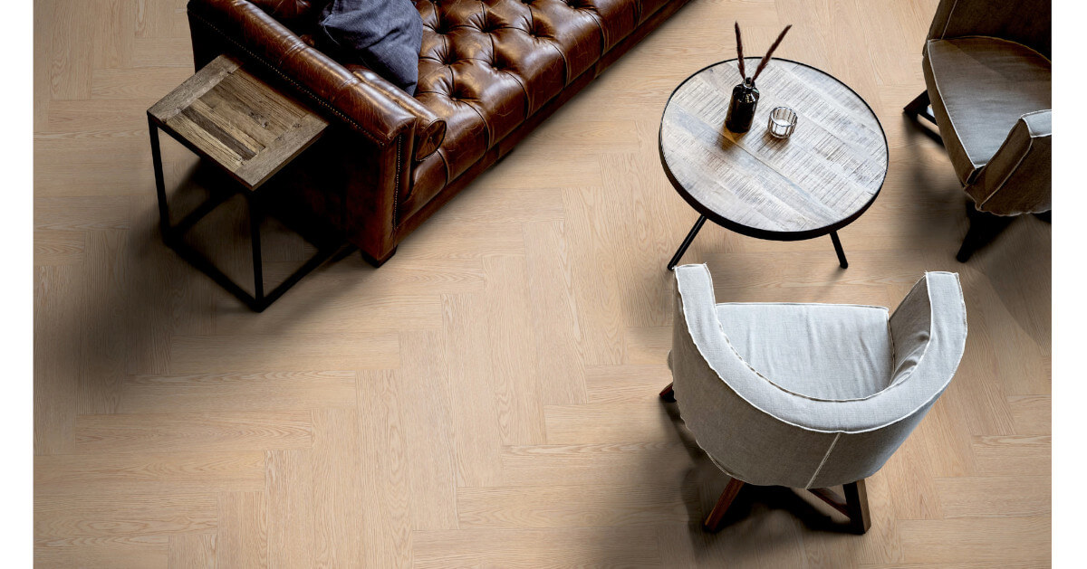 Das klassische, sich kreuzende Verlegemuster im Sōya-Sortiment schafft eine feine Balance aus Dynamik und Struktur, ohne dabei aufdringlich zu wirken. Durch die winklige Anordnung entsteht eine spannende Tiefe, die selbst kleinen oder schlicht eingerichteten Räumen eine besondere Raffinesse verleiht.