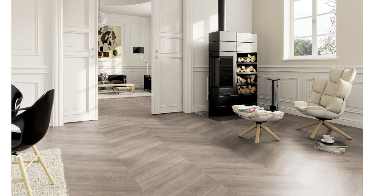 Neu bei Sōya-Vinyl: Chevron Das Chevron-Verlegemuster, auch als Französisches Fischgrät bekannt, zeichnet sich durch präzise geschnittene Dielen aus, deren Enden im Winkel von 60° abgeschrägt sind und an der Schnittkante aufeinandertreffen. Dadurch entstehen perfekt abgestimmte Spitzen, die eine klare, gleichmäßige V-Form bilden. Im Vergleich zum klassischen Fischgrät-Muster, bei dem die Kopfkante der einen Diele auf das Ende der Längskante der anderen Diele im 45° Winkel trifft, wirkt Chevron ruhiger und strukturierter. Diese unkonventionelle Offenheit kommt besonders in modernen oder repräsentativen Einrichtungen zur Geltung.