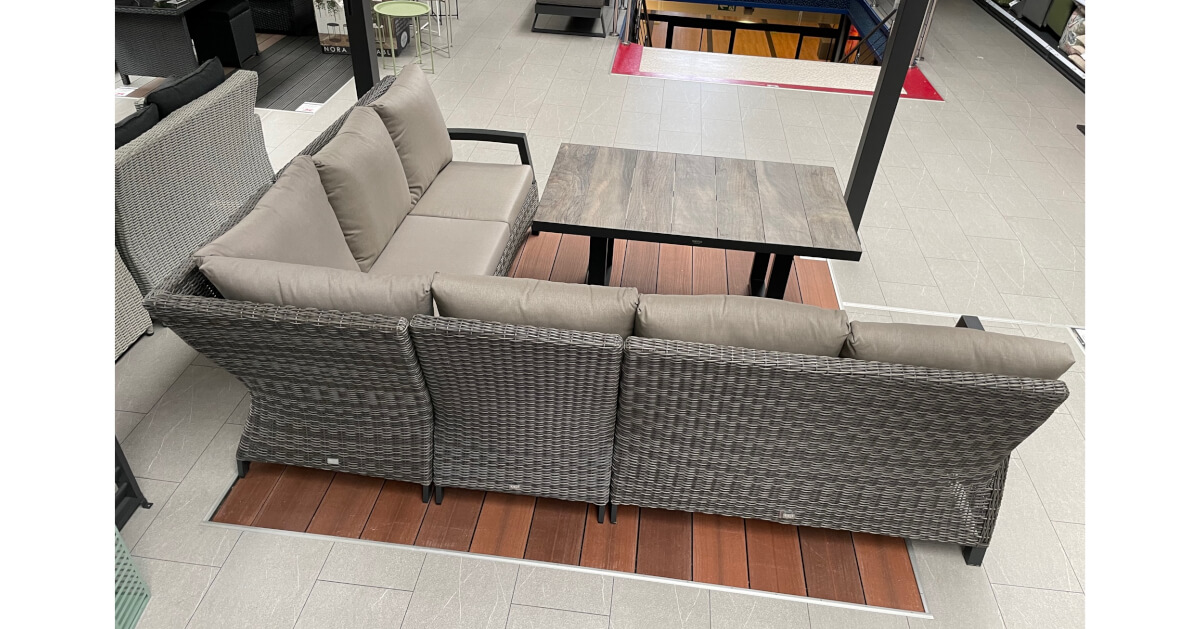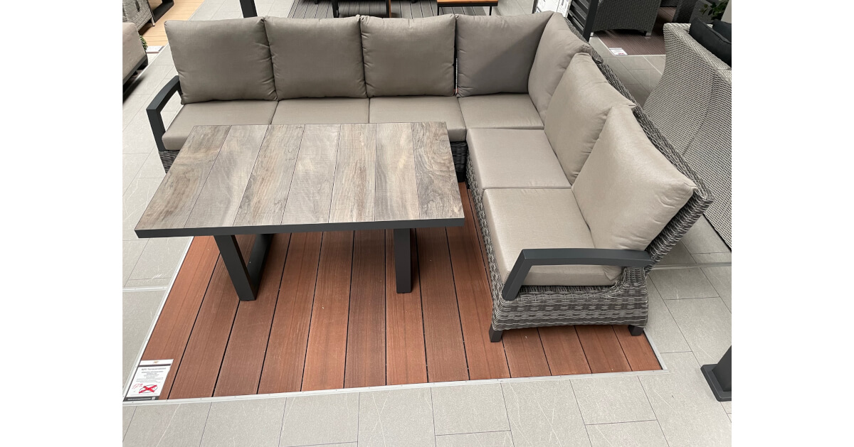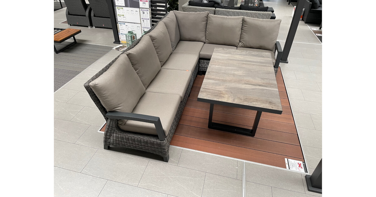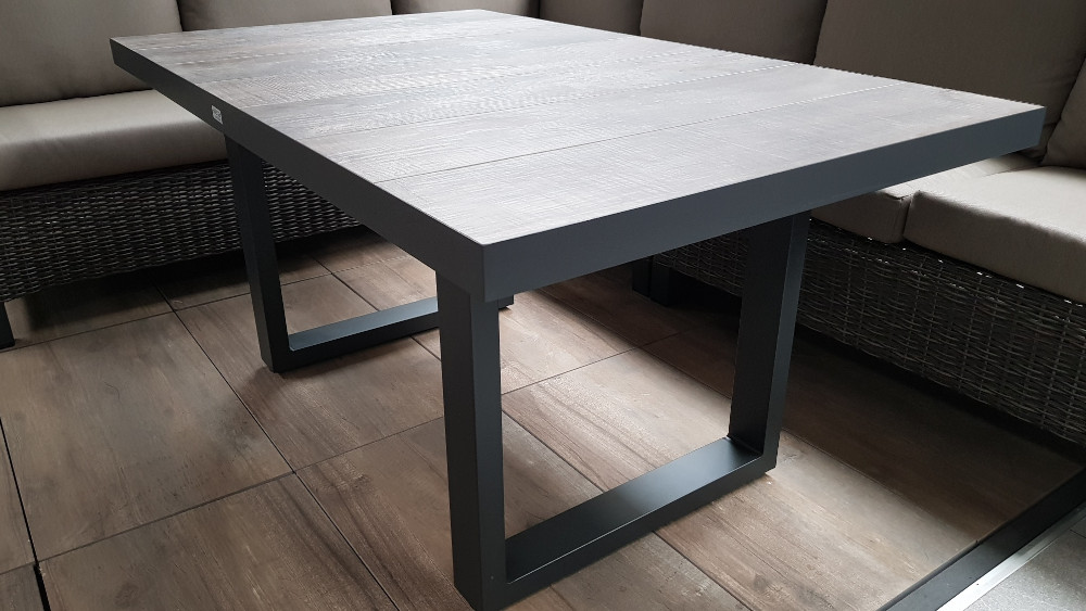 Die 5 teilige Eck-Loungegarnitur Corido bietet Ihnen den perfekten mix aus gemütlichkeit der Loungegruppe und dem nutzen von Dining Gartenmöbeln. Durch die Sitzhöhe ist das Essen besonders bequem möglich. Nach dem Essen lädt die Corido-Ecklounge zur Entspannung ein. Aufgrund der Größe ist die Sitzgruppe ideal für Nutzung mit der ganzen Familie und Freunden geeignet. Die Dining Lounge besteht aus einem Eckteil, einem Mittelteil und 2 2-Sitzer Loungebänken inkl. 13 Sitz- und Rückenkissen, sowie einem Loungetisch mit den Maßen 140 x 85 x 65 cm. Die Platte besteht aus besonders pflegeleichter und widerstandfähiger Keramik.