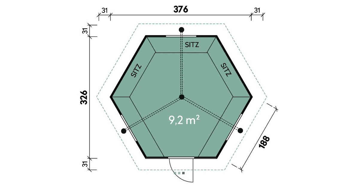 - Grundfläche: 9,2 m²